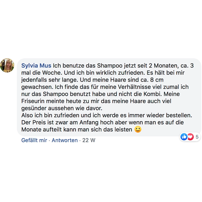 5 Sterne. Es hilft mir sehr. Meine Haare fallen nicht mehr aus.