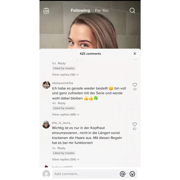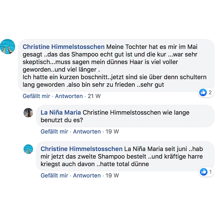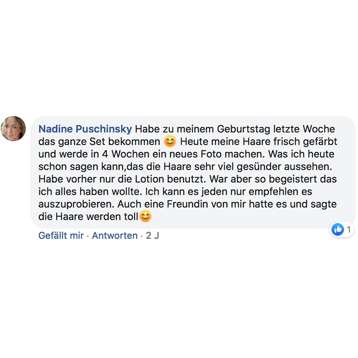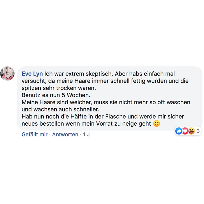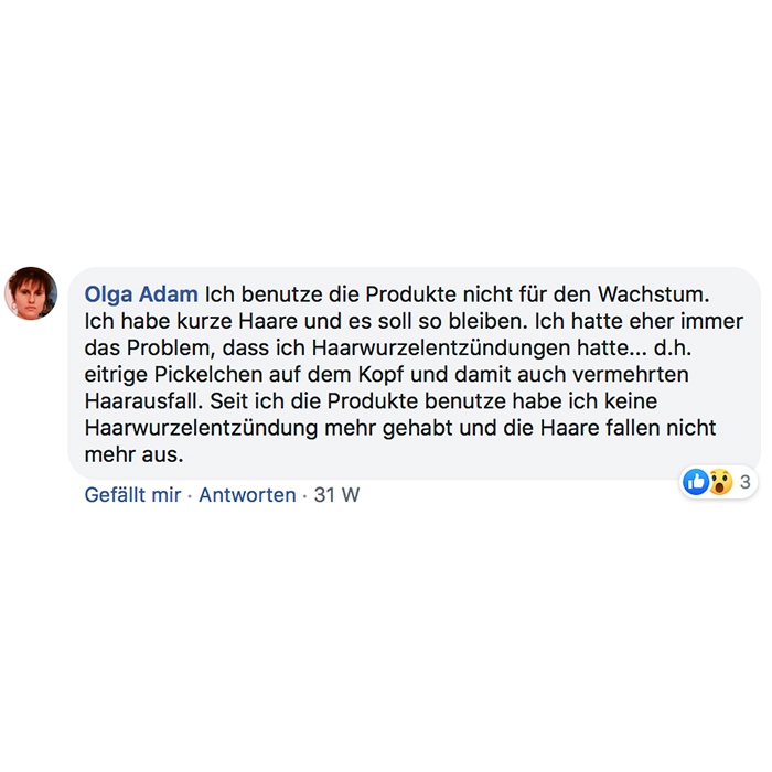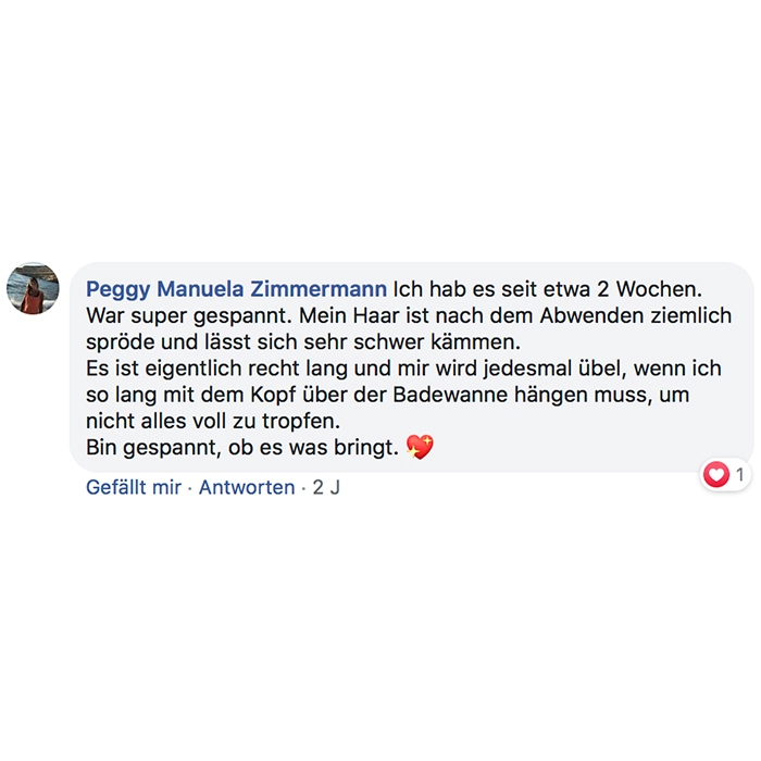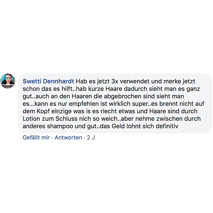 Fühlt sich sehr angenehm auf der Kopfhaut an, riecht dezent und angenehm und bin gespannt auf die Resultate!