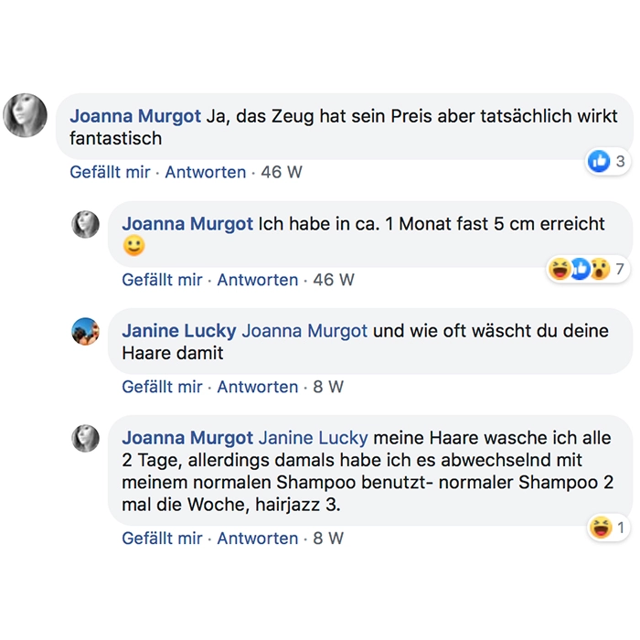 HAIR JAZZ hilft Ihrem Haar, schneller zu wachsen.