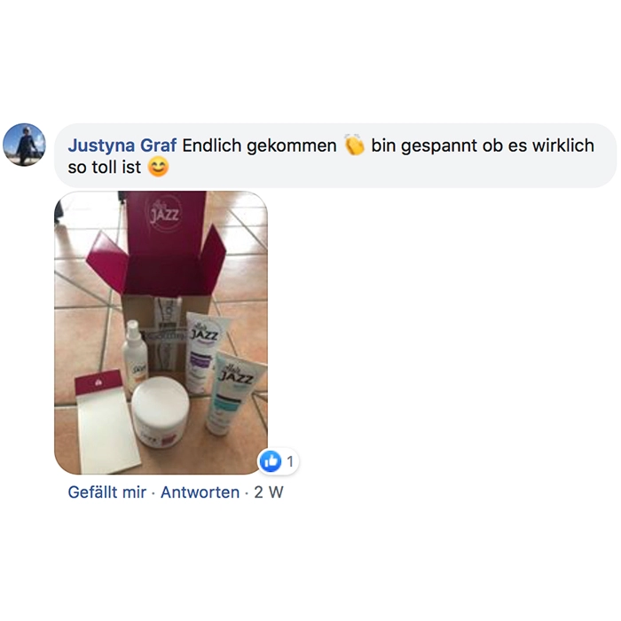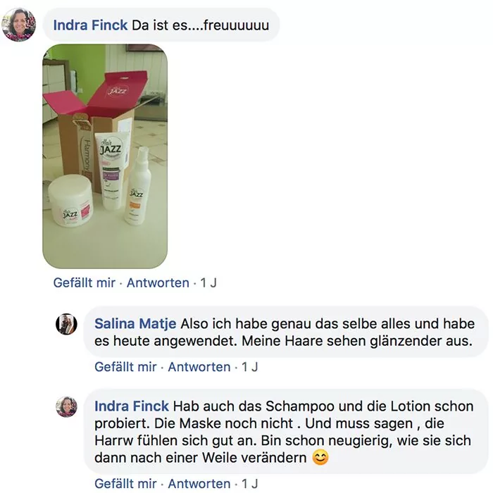 Das Untersuchungslabor SPINCONSO Unit der französischen Firma SPINCONTROL hat im Juni 2017 nach den Erfahrungen und Bewertungen der Testpersonen, eine Studie der Wirksamkeit der Produkte von HAIR JAZZ durchgeführt. Es wurde an 106 Frauen aus unterschiedlichen Altersgruppen mit unterschiedlichen Haarfarben und Haarlängen analysiert. Dauer der Untersuchung – 28 Tage.