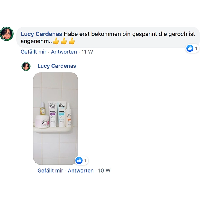 Ich war sehr skeptisch, dieses Produktset zu testen, aber ich war beeindruckt! Der Geruch ist angenehm, fast wie ein Friseurprodukt.