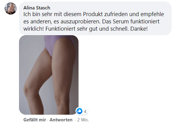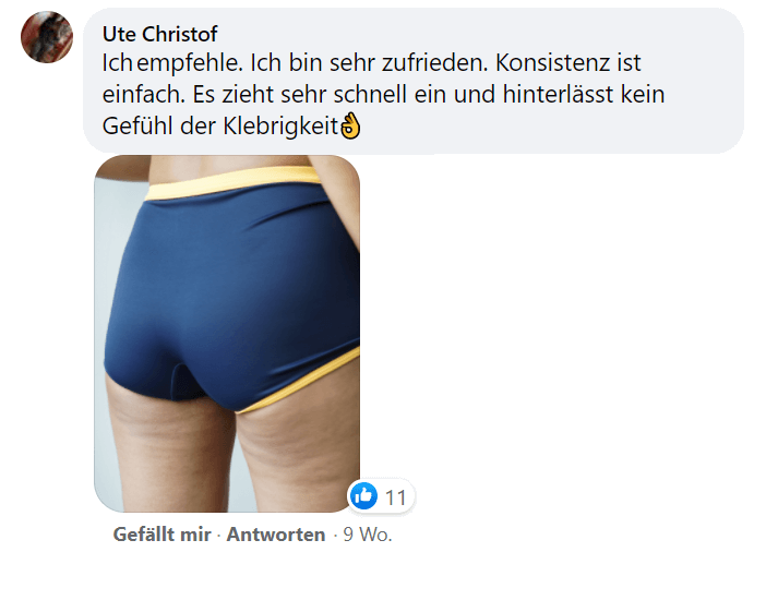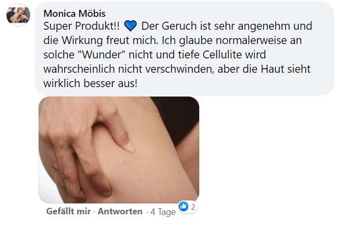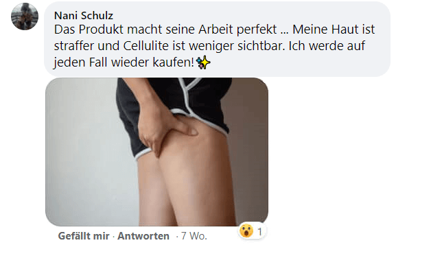 Ich bin absolut überrascht über das Produkt! ? Es wirkt tatsächlich. Meine Haut war nach der 1. Anwendung bereits viel straffer. Nach mehreren Anwendungen hatten meine Schenkel an Umfang verloren. Und das für den super Preis. Werde mich auf jeden Fall mit dem Produkt eindecken!?