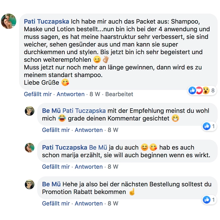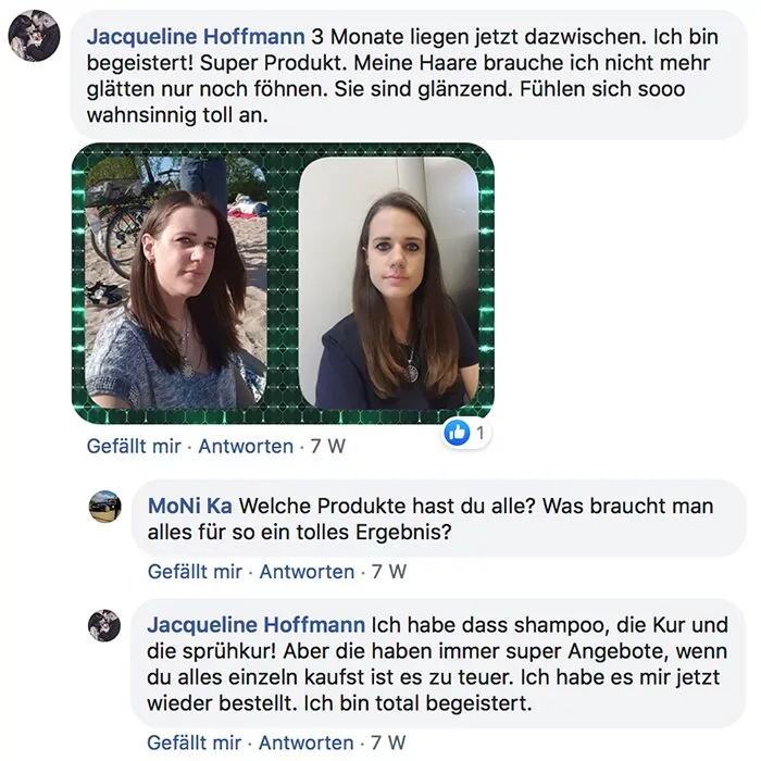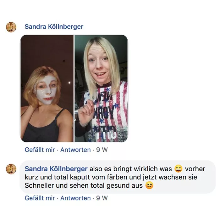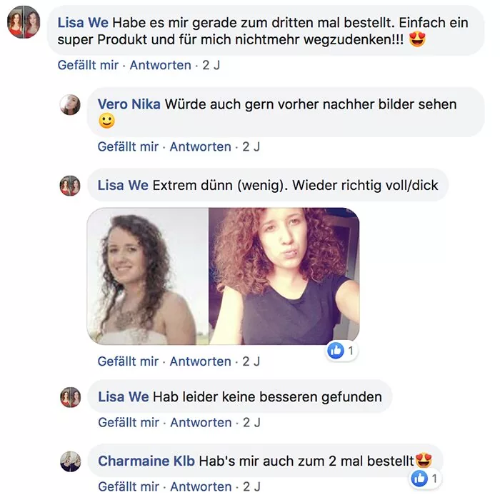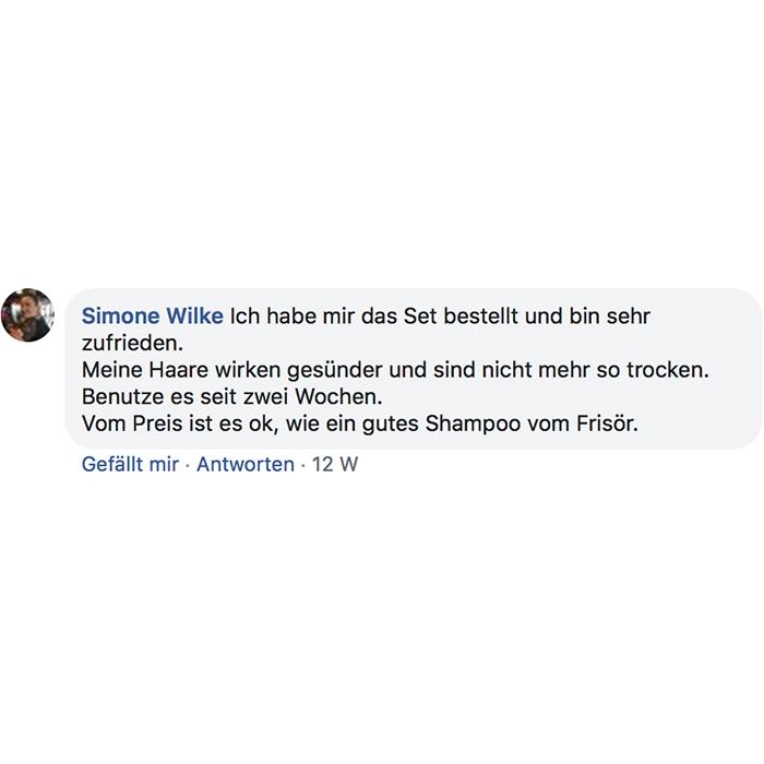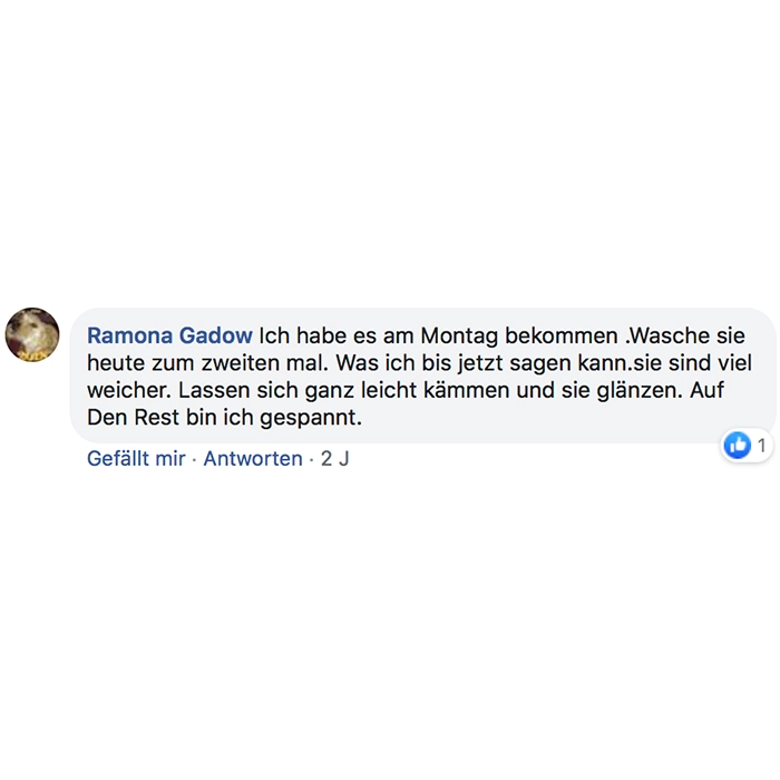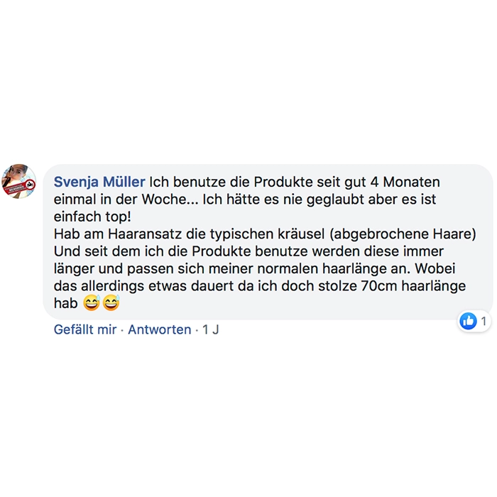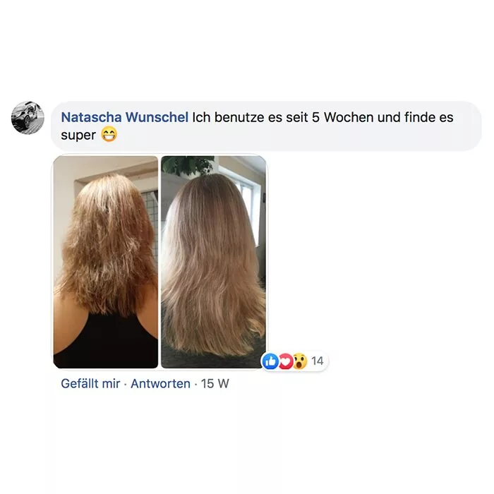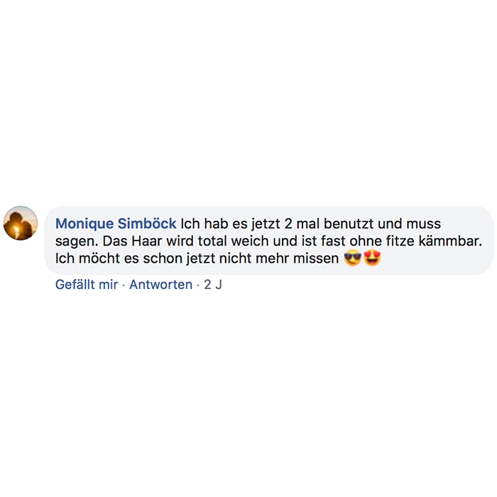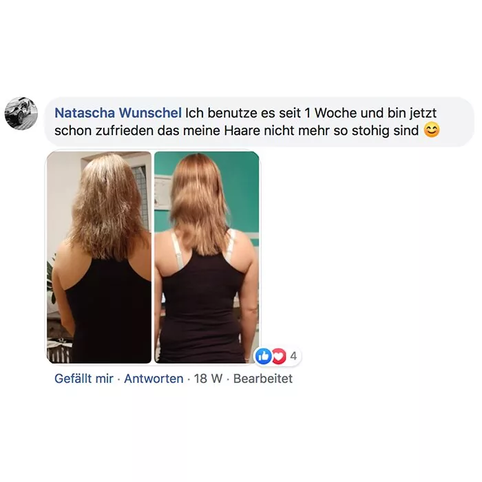 Habe heute die Produkte bekommen und sofort ausprobiert! Bin total begeistert meine Haare fühlen sich schon weich und sind nicht mehr so strohig! Sogar meine locken kommen wieder