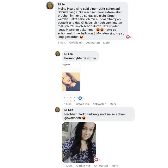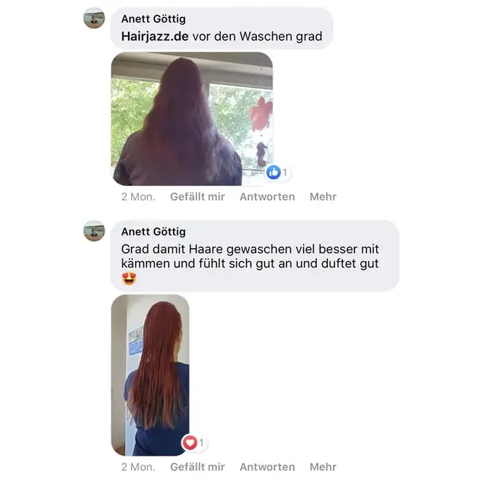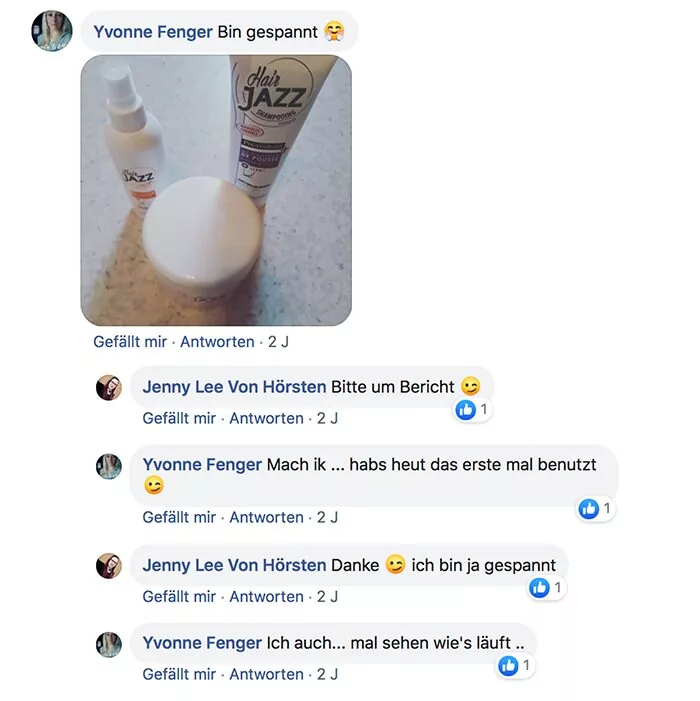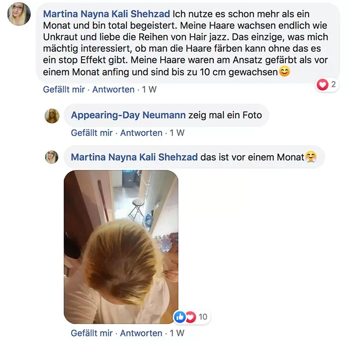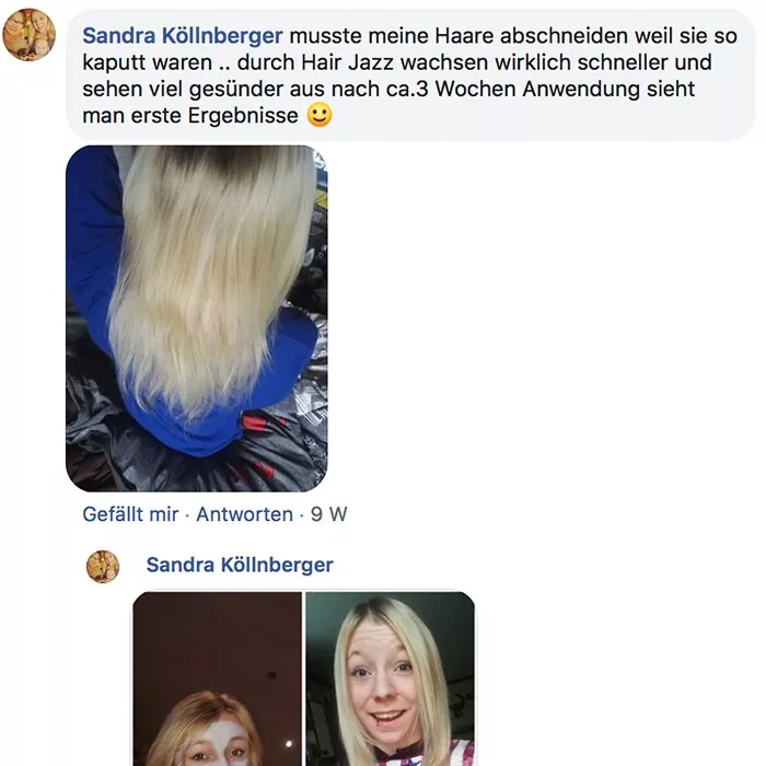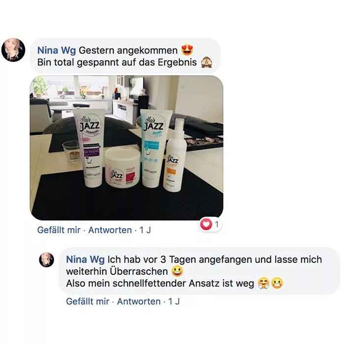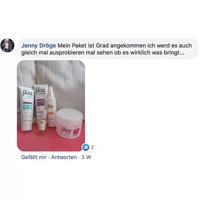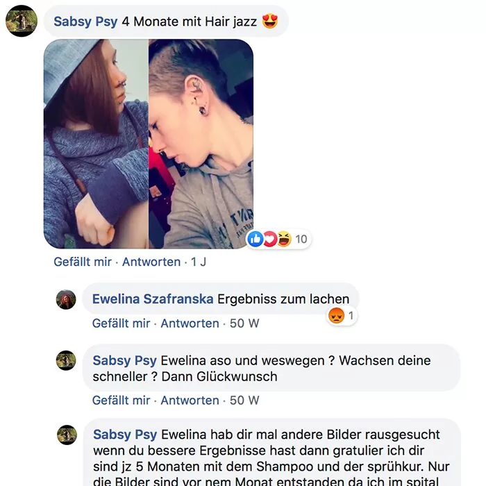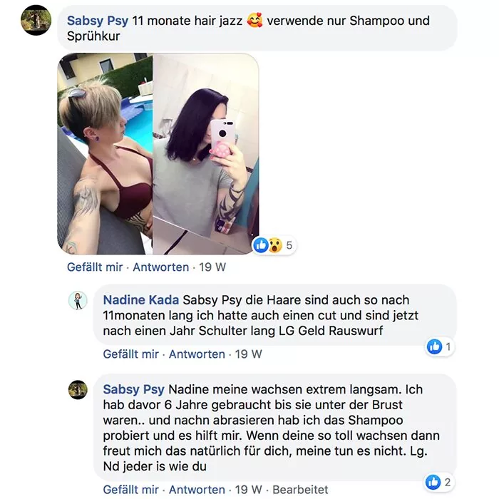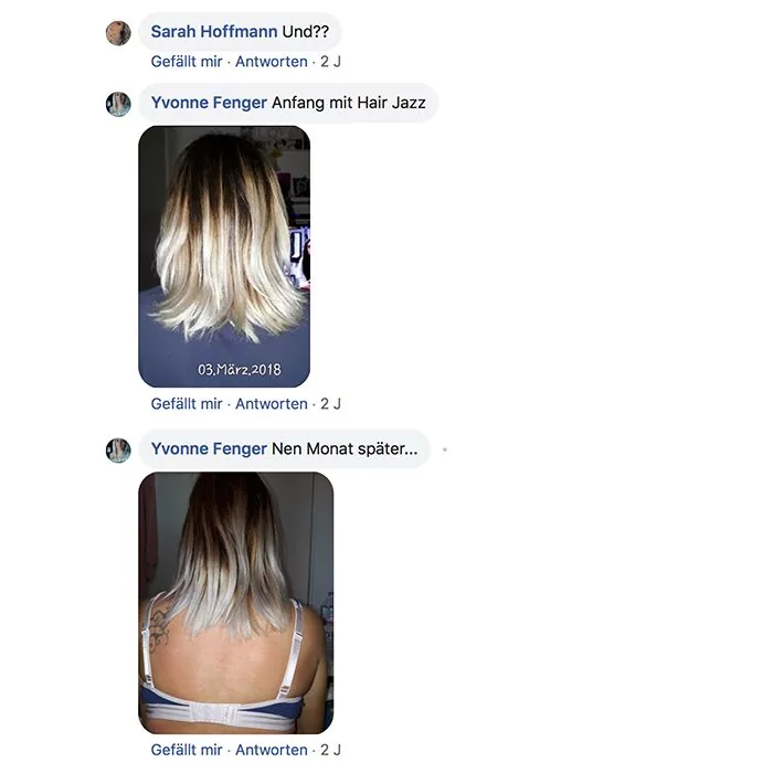 Habe ich jazz Produkte verwendet und meine Haare sind super schön und gleichmäßig nachgewachsen