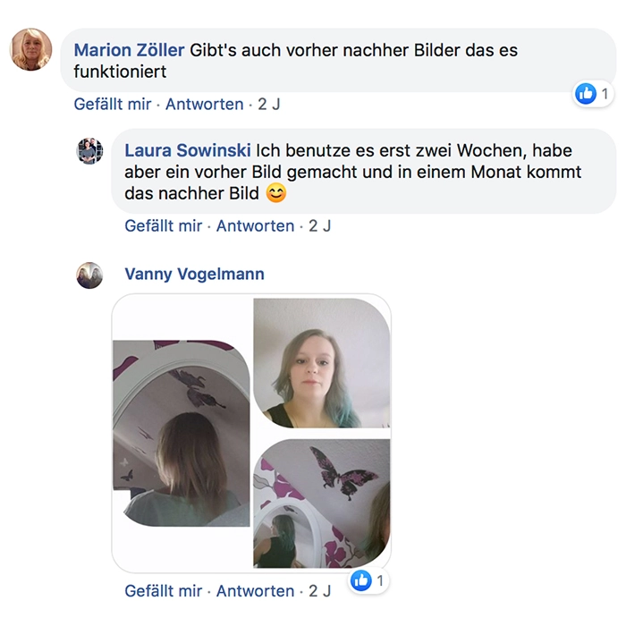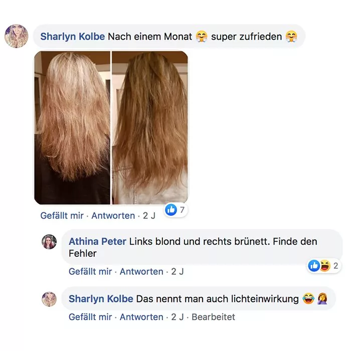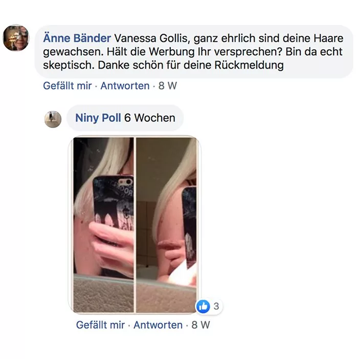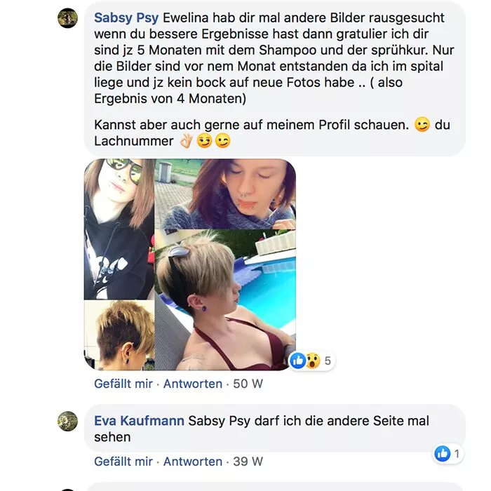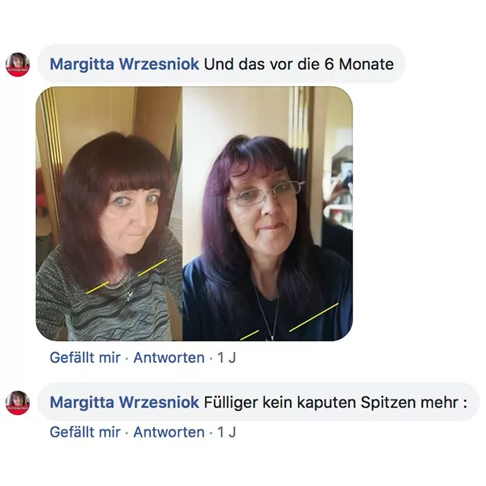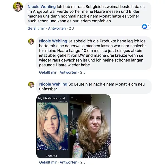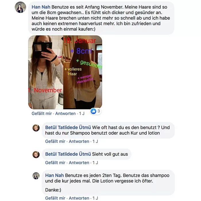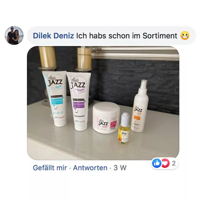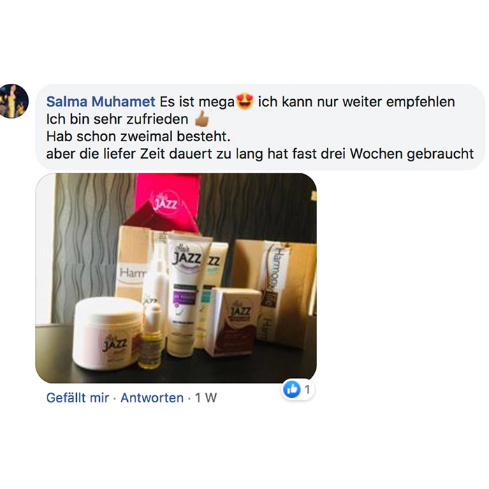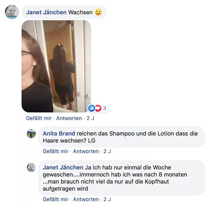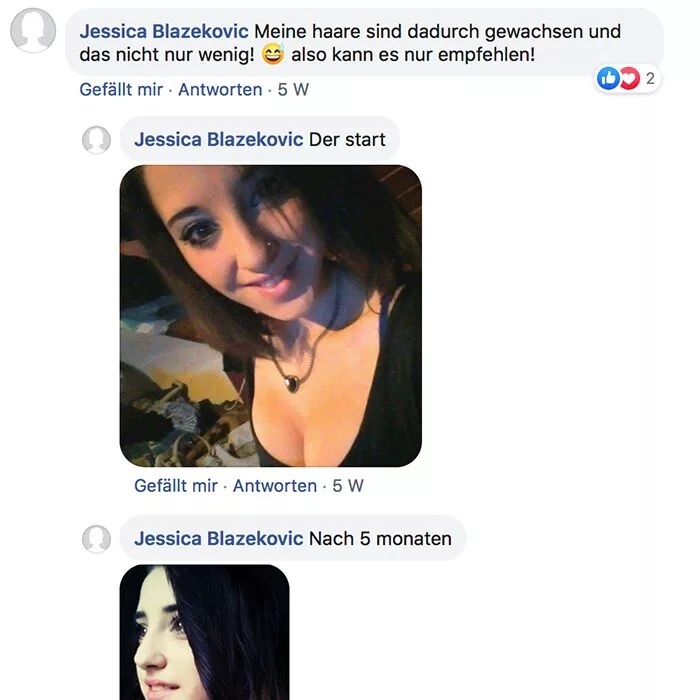 Habe ich jazz Produkte verwendet und meine Haare sind super schön und gleichmäßig nachgewachsen