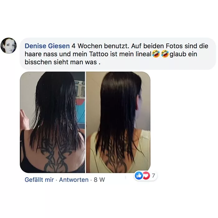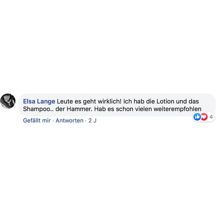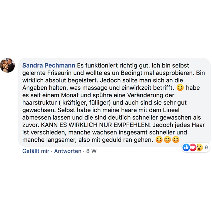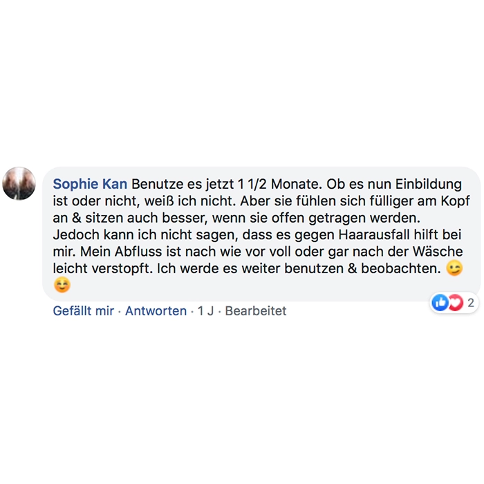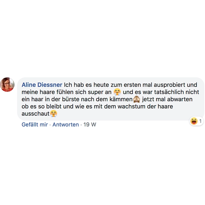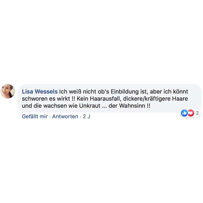 Ich weiß nicht ob's Einbildung ist, aber ich könnt schworen es wirkt !! Kein Haarausfall, dickere/kräftigere Haare und die wachsen wie Unkraut ... der Wahnsinn !!